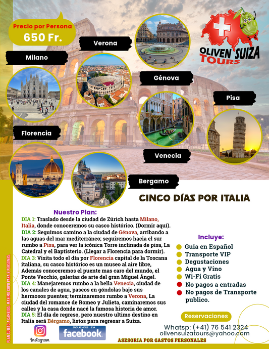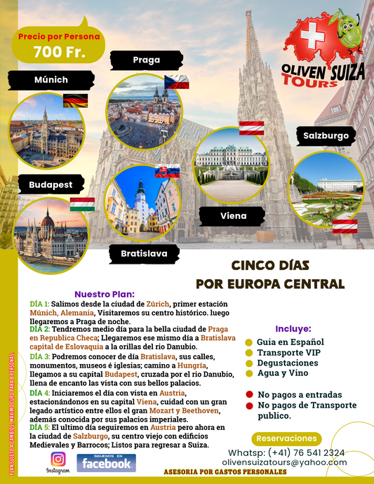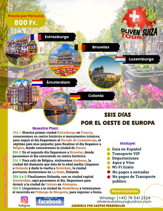 Proveedor:Oliven Suiza ToursPrecio habitual CHF 600.00Precio habitualPrecio unitario / porPrecio de oferta CHF 600.00 -